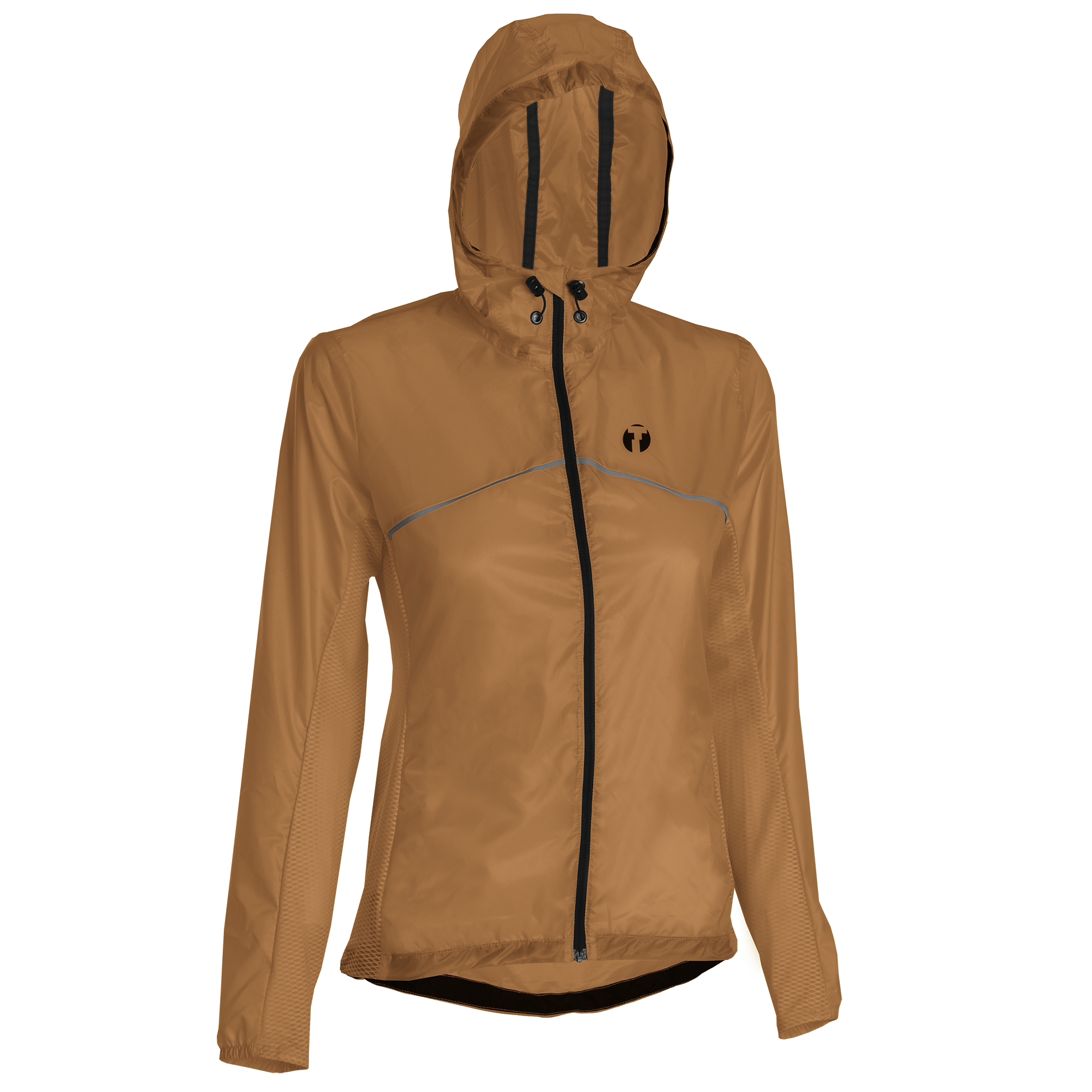 Löparjackan har en åtsittande, smal passform med tekniskt framåtböjda armar, vilket ger total rörelsefrihet. Jackan har även stora ventilationszoner längs sidorna och under armarna, vilket ger bra ventilation vid höga aktivitetsnivåer. Jackan kan justeras med gummiband nedtill samt har reflexdetaljer som bidrar till ökad synlighet i mörkret.