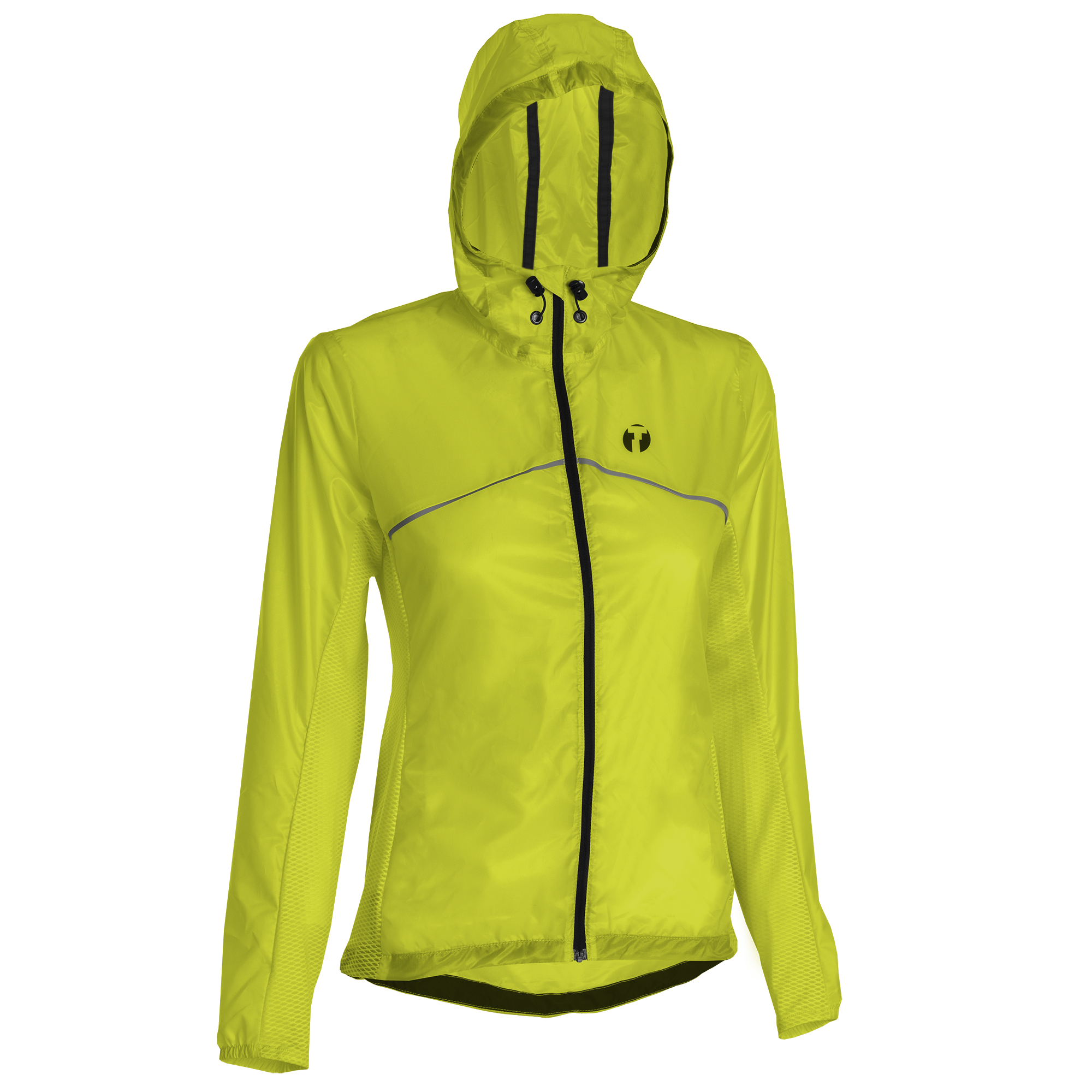 Löparjackan har en åtsittande, smal passform med tekniskt framåtböjda armar, vilket ger total rörelsefrihet. Jackan har även stora ventilationszoner längs sidorna och under armarna, vilket ger bra ventilation vid höga aktivitetsnivåer. Jackan kan justeras med gummiband nedtill samt har reflexdetaljer som bidrar till ökad synlighet i mörkret.